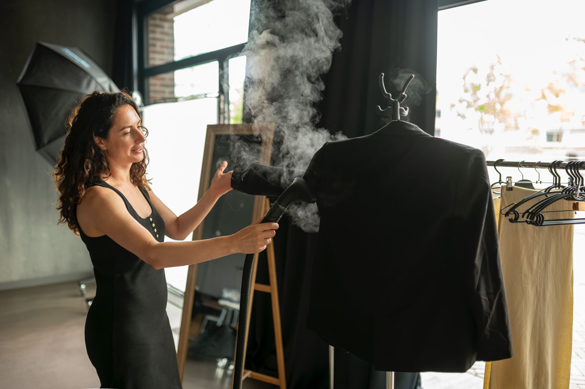 - Furniture, V-flats, wall backdrop system, makeup station, and steamer are at your disposal.